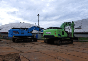 De E-Booster© leverde de éxtra energievraag en de machines konden 100% emissieloos het werk uitvoeren.